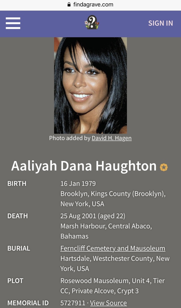 Aaliyah Haughton Grave / Aaliyah Monet (1997-1998) - Find A Grave Memorial
